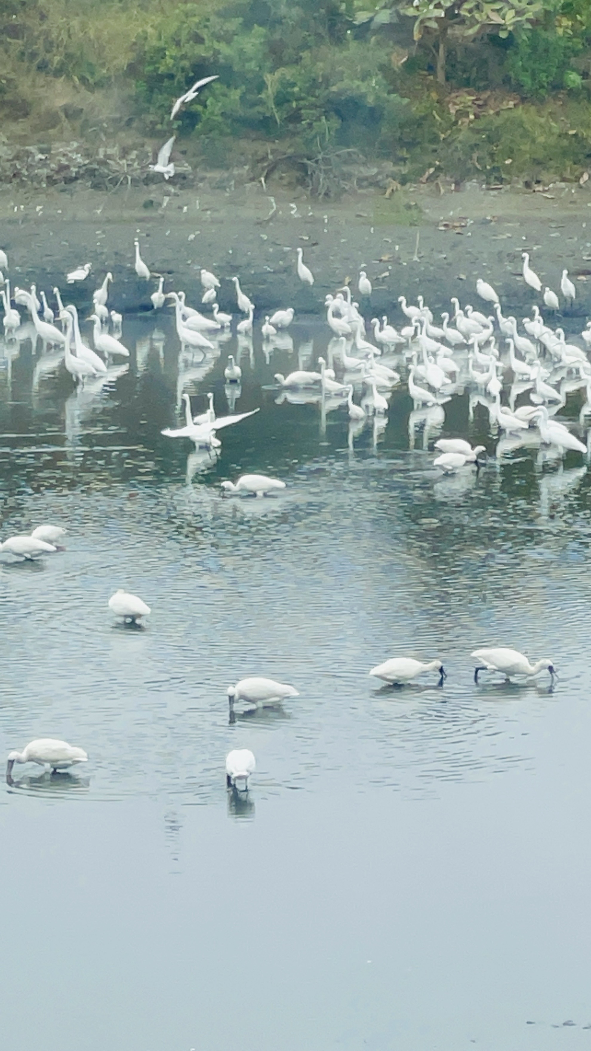 黑面琵鷺對棲地條件相當敏感,而魚塭水域正是牠們重要的覓食與休息空間之一。清晨或傍晚,站在魚塭邊緣,常能靜靜觀察牠們在水面活動,感受自然節奏與人類養殖環境之間的平衡。